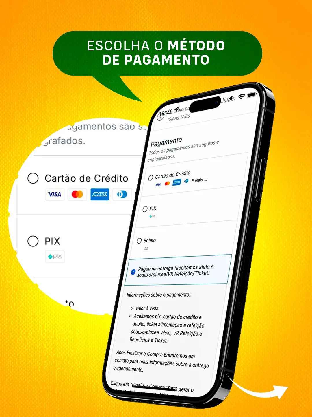 Temos meios de pagamento na entrega ,aceitamos Pix, Cartao de credito e debito, tambem aceitamos os Vouchers ( Alelo, Sodexo, V.R e Ticket ). Aceitamos duas formas de pagamentos na entrega.